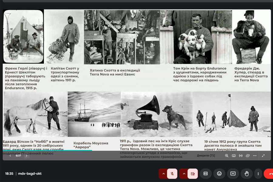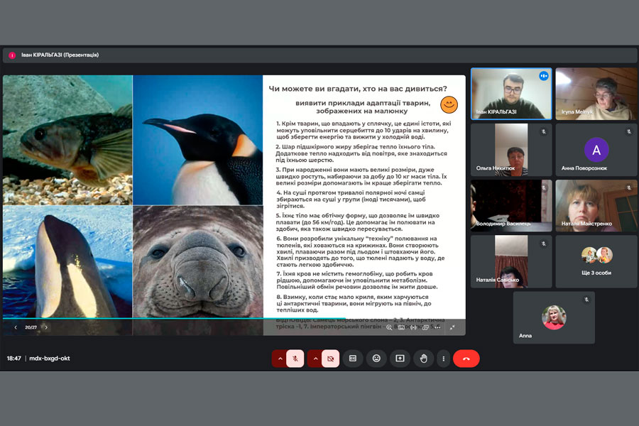 На спільному засіданні магістрант кафедри Іван КІРАЛЬГАЗІ презентував доповідь на тему «Методичне забезпечення викладання теми «Антарктида» у шкільному курсі географії». Доповідач зазначив, що на перший погляд може здатися, що удосконалення методичних аспектів викладання теми «Антарктида» не є актуальним: цей материк у шкільному курсі географії вивчається вже багато років, отже його навчально-методичне забезпечення у жодному разі не може бути незадовільним. Однак слід розуміти, що «ландшафт географічної освіти» знаходиться у стані постійних змін, саме тому вчителям географії необхідно присвячувати час та енергію для розвитку свого предмета, для опанування нових технологій, форм, методів та прийомів навчання, якщо вони хочуть зацікавити та надихнути своїх учнів, довести їм, що якісна географічна освіта має значні переваги. Пан Кіральгазі акцентував увагу присутніх на тому, що Антарктида – це континент, який відіграє ключову роль у розумінні глобальних екосистем і кліматичних процесів, а також є унікальною природною лабораторією для наукових досліджень.