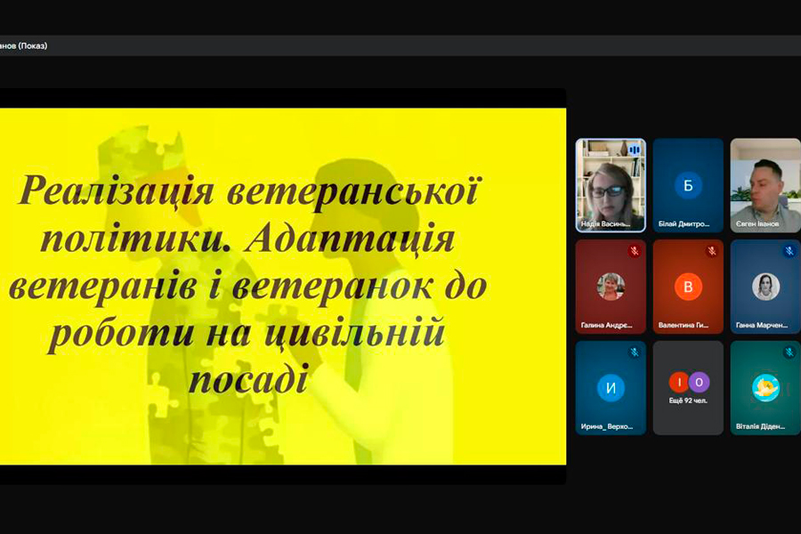 Тематика першого вебінару: «Реалізація ветеранської політики. Адаптація ветеранів і ветеранок до роботи на цивільній посаді» є особливо актуальною в умовах сьогодення, адже питання інтеграції ветеранів у цивільне професійне середовище є одним із ключових для відновлення людського капіталу та розвитку громад у період воєнного стану та майбутньої повоєнної відбудови.