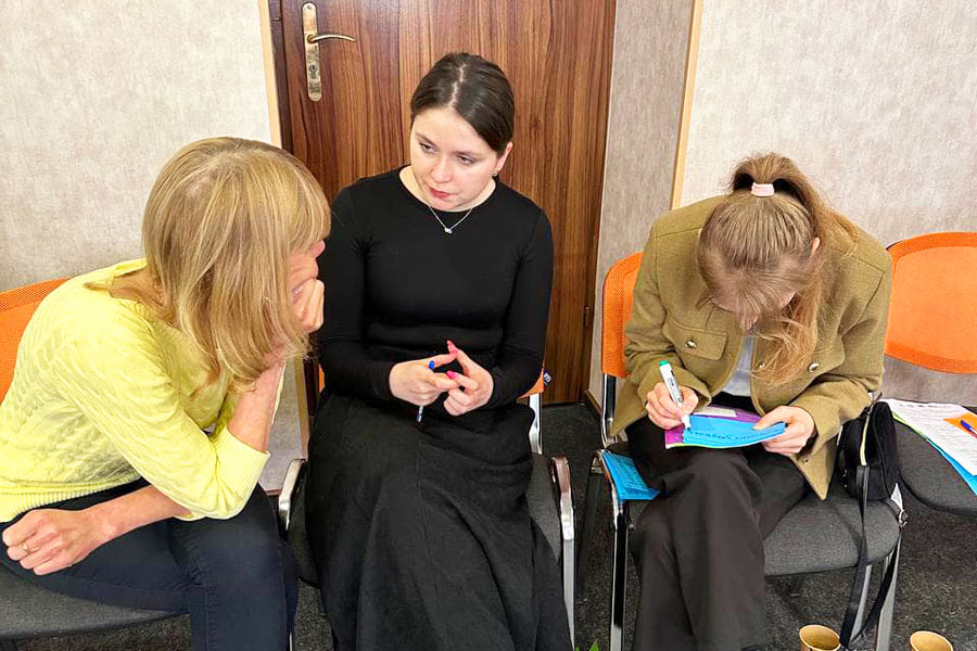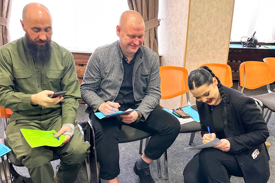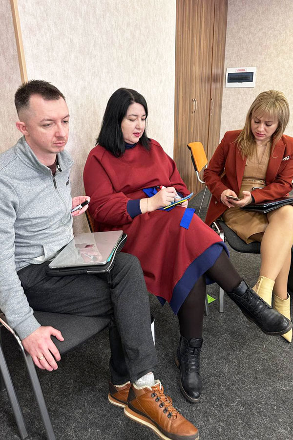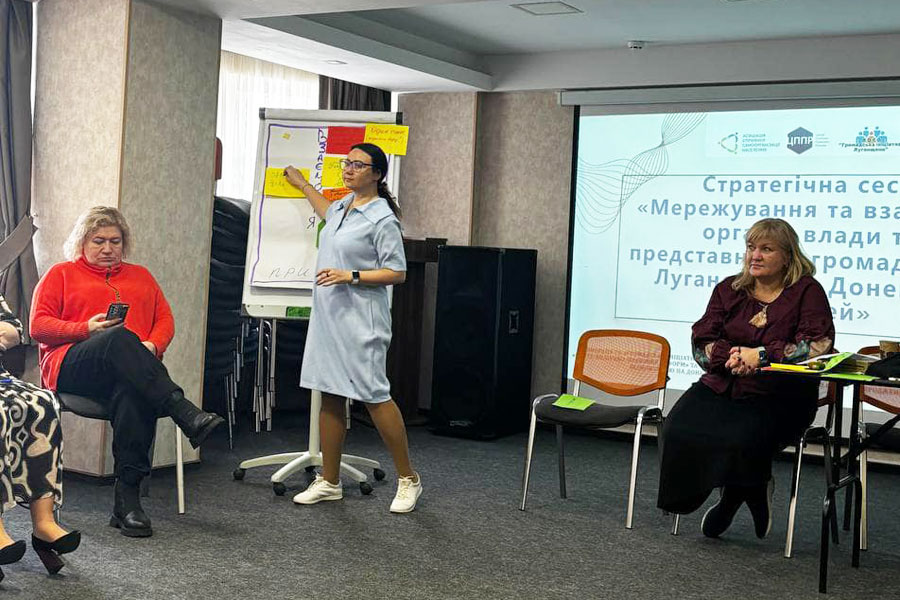 Однією з фасилітаторок зустрічі була Катерина Котеленець, к.соц.н., доцент кафедри філософії та соціології, яка впроваджувала вправи, що сприяли налагодженню горизонтальної співпраці. Разом зі Світланою Крот вона допомагала налагодити діалог та взаємодію між представниками влади та громадськості, що потрібно задля їх залучення до процесів інституційного відновлення, формування мережі активної спільноти та посилення їх впливу на процеси прийняття рішень та формування бачення майбутнього Сходу України на державному рівні.