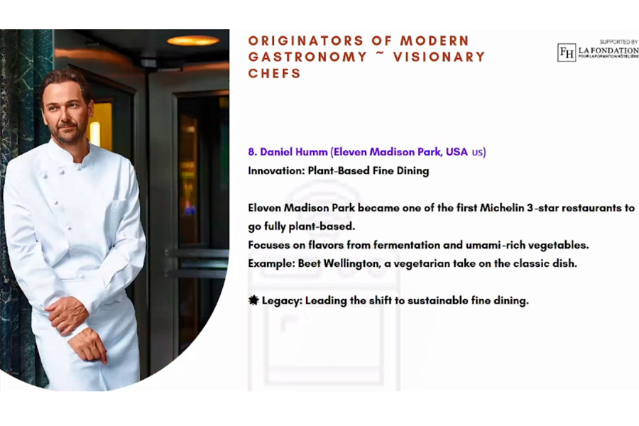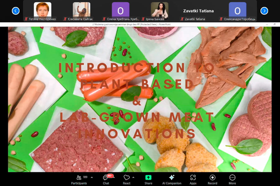 Семінар також охопив нові напрямки, як-от інновації у виробництві рослинного та лабораторно вирощеного м’яса, високотехнологічні методи грилювання та інтеграцію робототехніки в кухонне середовище. Візуальні презентації демонстрували практичне застосування цих технологій − від процесів ферментації до роботизованих маніпуляторів, які працюють з продуктами.