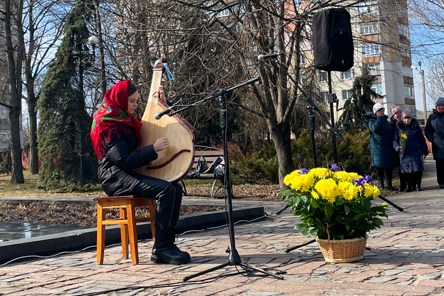Після флешмобу працівники та студенти університету вийшли до пам’ятника Тарасу Григоровичу у місті Лубни, де урочисто поклали квіти у знак пам’яті. Під час урочистостей біля пам’ятника, студентки університету зачитали вірші славетного Кобзаря та зіграли композицію на бандурі.