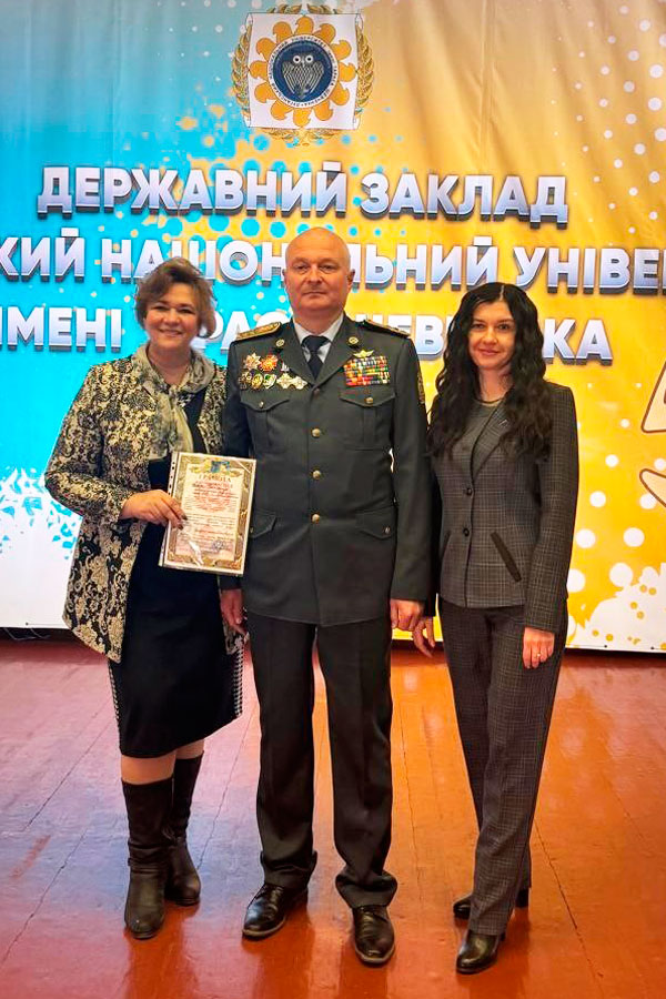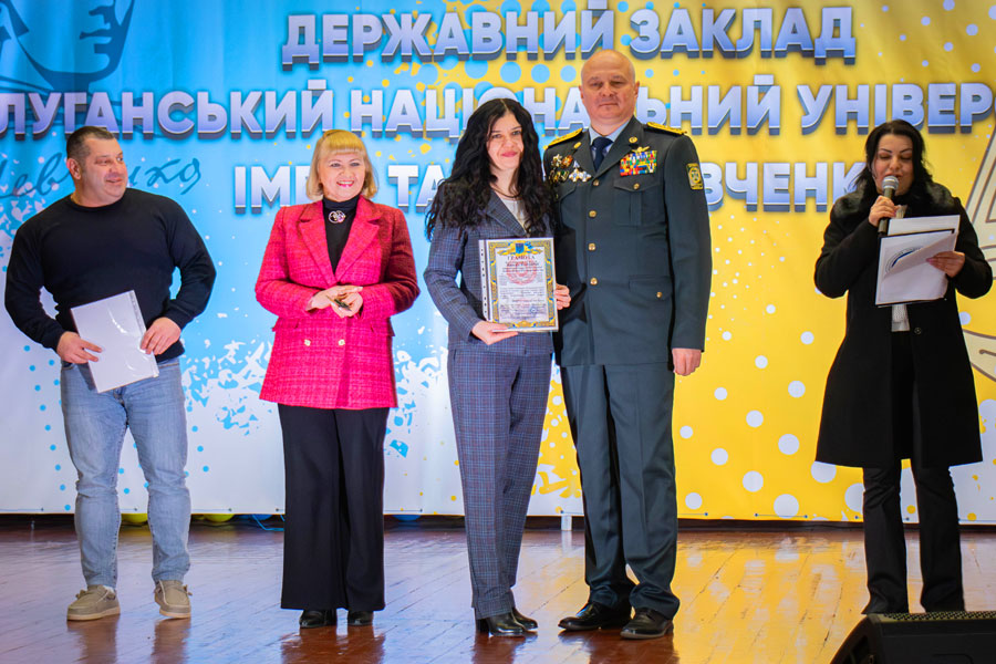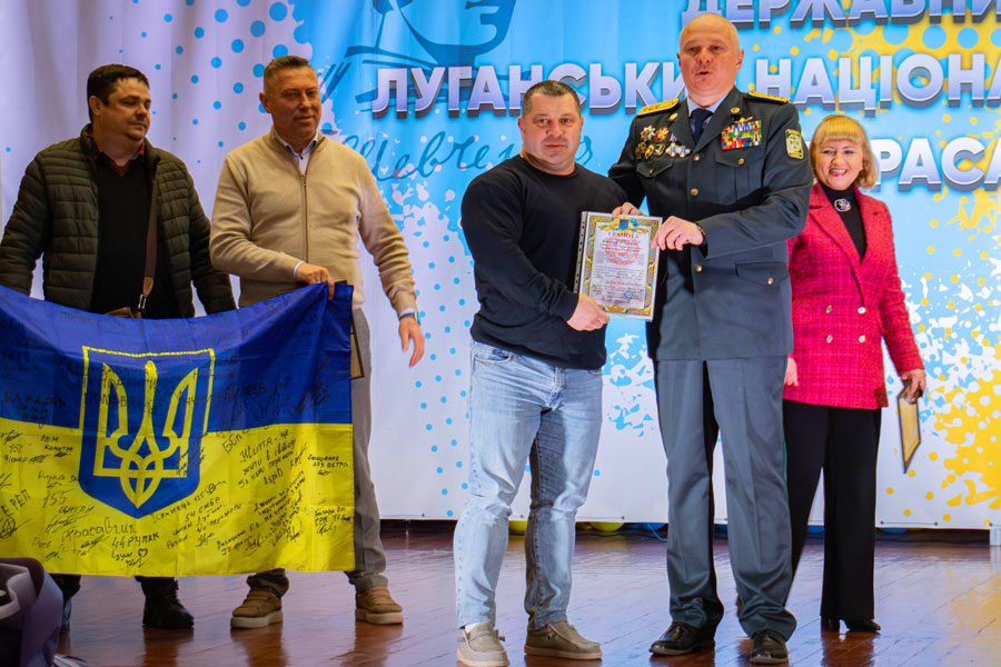 Також пані Оксана вручила Подяку від Благодійного фонду «Честь і Совість» колективу Луганського національного університету імені Тараса Шевченка — за активну громадянську позицію, підтримку армії, участь у волонтерських ініціативах та виховання нової генерації патріотів.