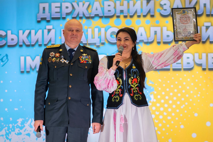 Грамотою була також відзначена Заслужена артистка України Олена Білоконь, що саме в цей день в університеті виступала з благодійним концертом.