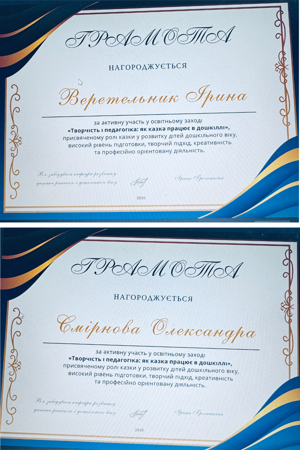 Особливої уваги заслуговує практична складова заходу. Кожна казка була не лише представлена, а й інтегрована у взаємодію з дітьми в закладах дошкільної освіти. Здобувачі освіти читали власні твори, організовували театралізовані інсценізації, ігрові ситуації, а також активно залучали дітей до обговорення змісту казок, спонукали до висловлення власних думок і переживань. Такий підхід сприяв розвитку мовленнєвої компетентності, творчої уяви, емоційного інтелекту та соціальних навичок дітей.