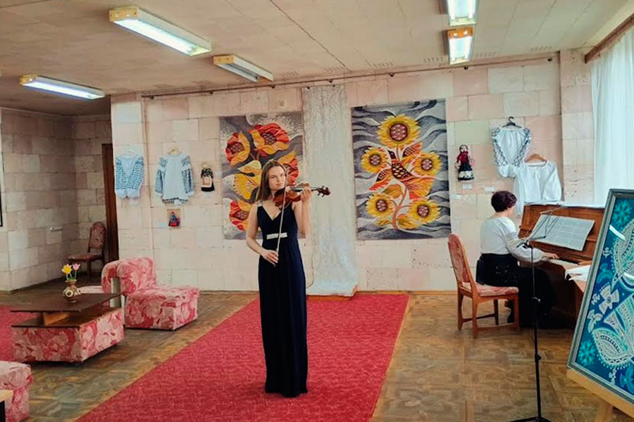Студенти кафедри музичного мистецтва та хореографії навчально-науковго інституту мистецтв виконували камерну музику під керівництвом Народного артиста України Юрія Кириченка (скрипка) та викладачки кафедри Олени Кириченко (фортепіано).