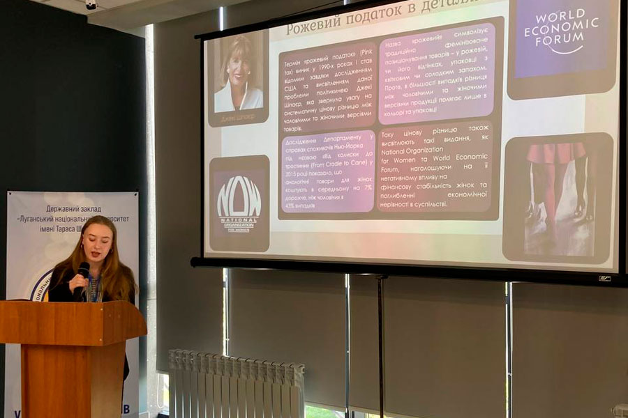 Науковий захід був організований Держаним закладом «Луганський національний університет імені Тараса Шевченка». Жваве обговорення серед учасників конференції викликала доповідь Вікторії БОРИСЕНКО на тему: «Рожевий податок в Україні. Соціально-економічний аспект гендерної цінової дискримінації».