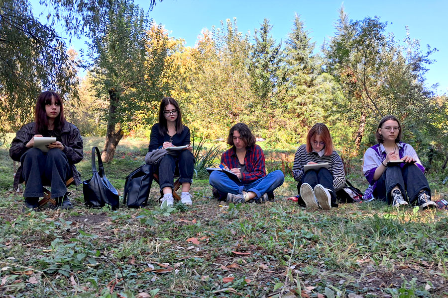Спочатку представники галереї провели екскурсію ботанічним садом та розповіли про його довгу історію та унікальні рослини. Потім художники шукали цікаві локації, де можна намалювати красиві пейзажі. Роботи мали різні характери: від простих замальовок до повноцінних картини. Серед учасників пленеру були і викладачі кафедри образотворчого та декоративно-прикладного мистецтва Наталія Дігтяр і Олексій Соболевський та старший викладач кафедри дизайну Оксана Гетьман.