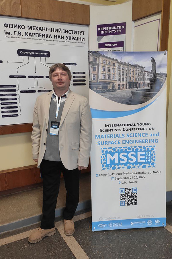 24-26 вересня 2025 року у Фізико-механічному інституті ім. Г.В. Карпенка НАН України відбулася Міжнародна конференція молодих вчених з матеріалознавства та інженерії поверхні (International Young Scientists Conference on Materials Science and Surface Engineering – MSSE-2025).