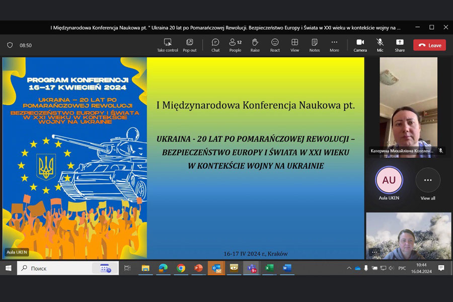 Викладачі кафедри філософії та соціології 16 квітня взяли онлайн участь у І Міжнародній науковій конференції «Україна – 20 років після Помаранчевої революції – безпека Європи та світу в ХХІ столітті в контексті війни в Україні» (16-17 квітня 2024) / I. Międzynarodowej Konferencji Naukowej pt.: Ukraina - 20 lat po pomarańczowej rewolucji - bezpieczeństwo Europy i świata w XXI wieku w kontekście wojny na Ukrainie, na Uniwersytecie Komisji Edukacji Narodowej w Krakowie.