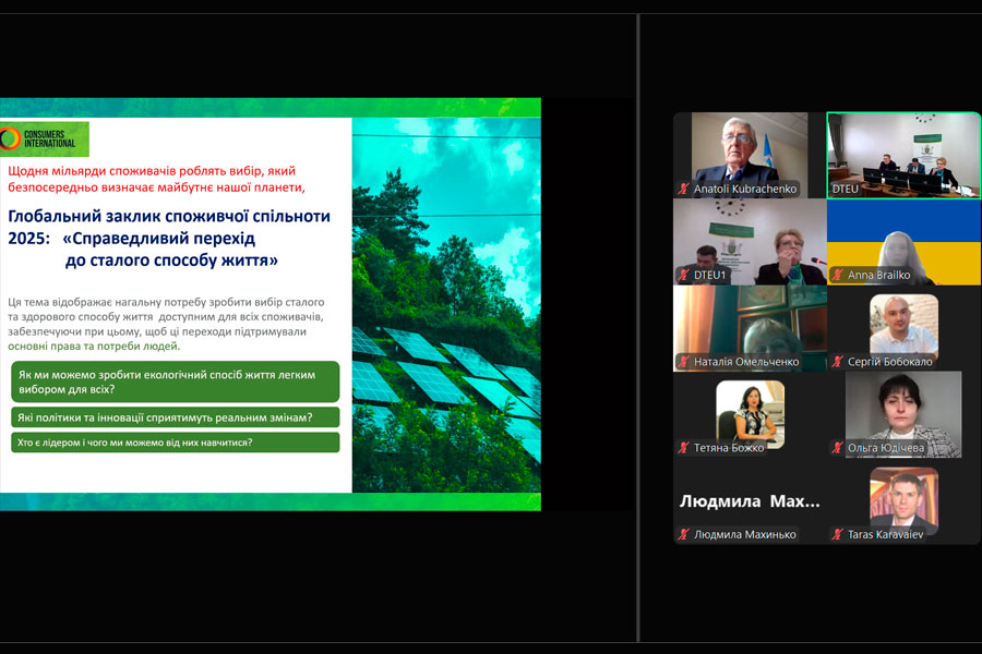 Участь провідних викладачів кафедри товарознавства і торгівельного підприємництва та здобувачів ОП «Товарознавство та експертиза в митній справі» у заходах присвячених висвітленню та обговоренню питань ролі споживача у глобальному та національному вимірі, європейського вектору захисту прав споживачів, сталого життя – здорового та екологічного безпечного споживання, виклики цифрового світу для споживача, громади споживачів, як чинник сталого.