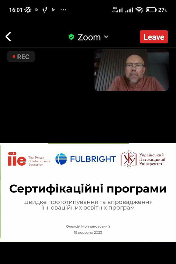 Своїм досвідом у розробці та впровадженні сертифікаційних програм поділився Олексій Молчановський, керівник офісу з інновацій Українського католицького університету. Сертифікаційні програми, є дієвим механізмом для закладів вищої освіти, їх тривалість може складати від кількох днів до місяців. Такі програми дозволяють випробувати нову тематику, перевірити та залучити нову аудиторію, протестувати роботу нових викладачів та підходів до викладання, а також можуть приносити додатковий дохід для університету. Перевагами сертифікаційних програм є швидке прототипування та валідація ідей/гіпотез; програми не обтяжені ліцензійними вимогами чи обов’язковими форматами навчання: можна пробувати будь-що в будь-якій конфігурації; максимально широкий спектр форматів, тривалості; дозволяють вибудовувати лінійку різних навчальних продуктів для більш широкої аудиторії; розвивають експертизу факультету/кафедри; додають до фінансової автономії для факультету/кафедри; розширюють мережу викладачів.
