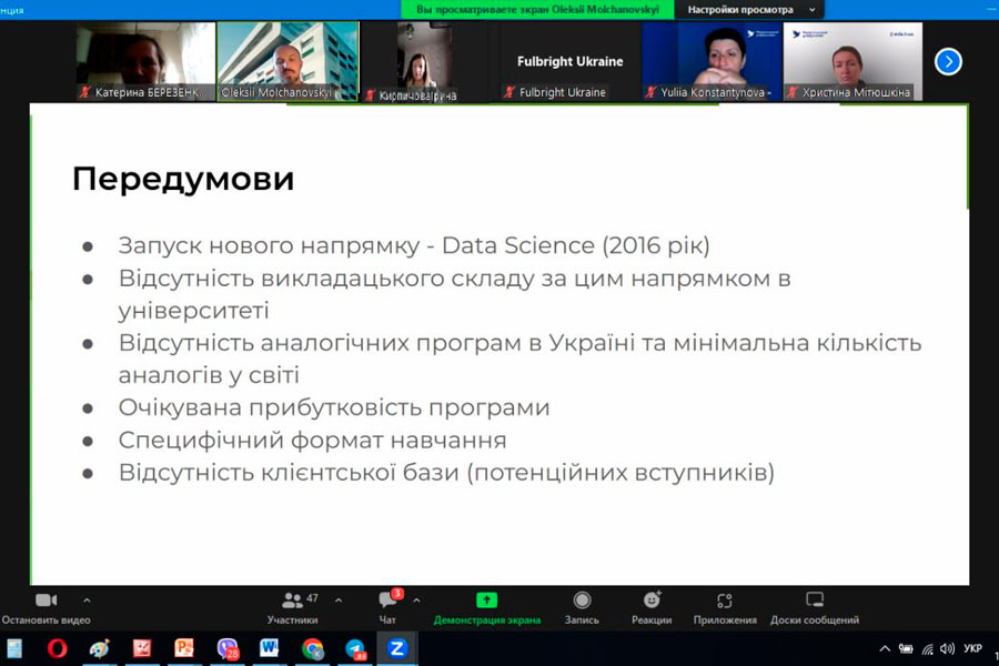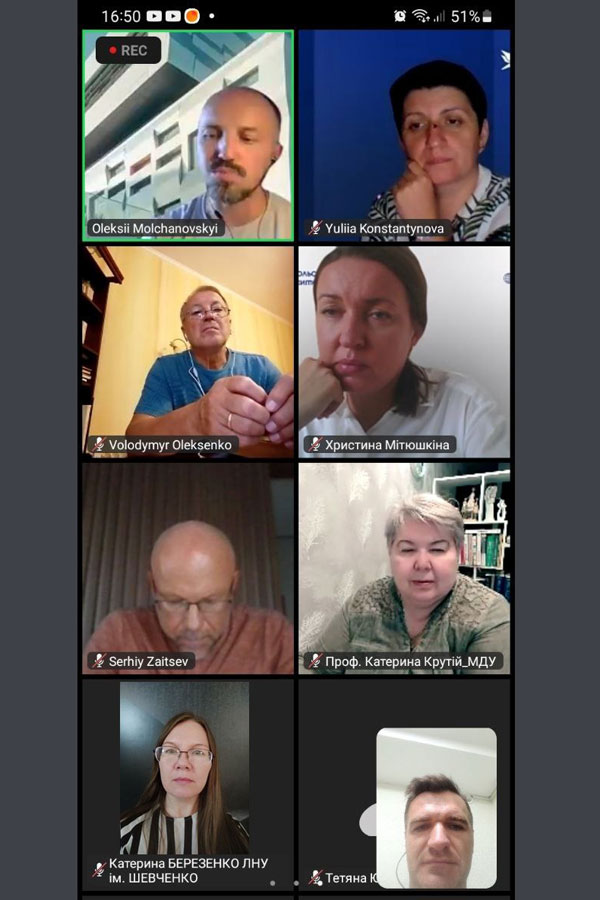 Декан факультету природничих наук Наталія Мацай та викладачі кафедри садово-паркового господарства та екології Катерина Березенко, Ірина Кирпичова, Олена Бордюгова, Сергій Скаковський взяли участь у вебінарі українських науковців-випускників Програми ім. Фулбрайта для представників переміщених закладів вищої освіти на тему: «Сертифікаційні програми: швидке прототипування та впровадження інноваційних освітніх програм», який відбувся 15 вересня.