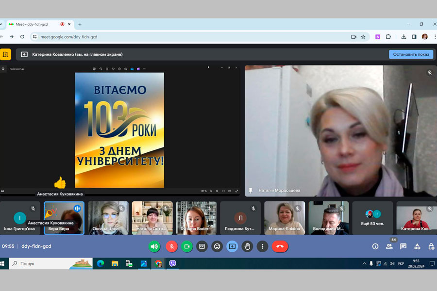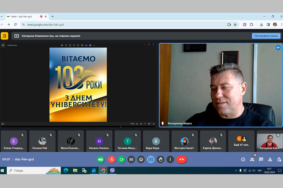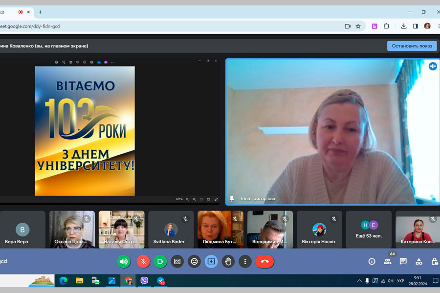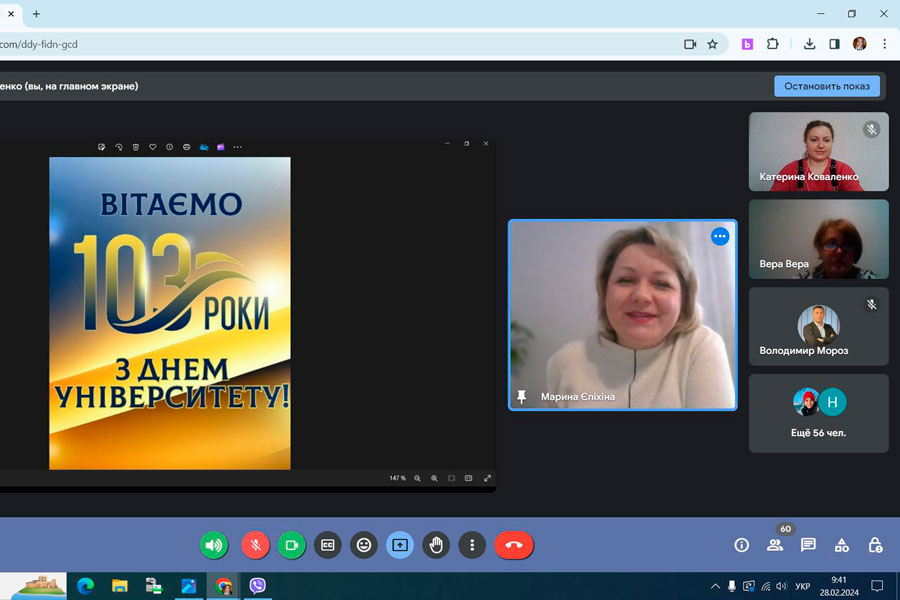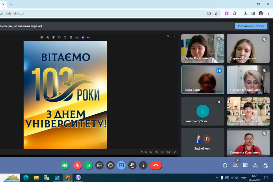 28.02.2024 в навчально-науковому інституті педагогіки і психології з нагоди відзначення 103-річниці від дня заснування університету відбулася урочиста онлайн-зустріч директорату, викладачів, здобувачів освіти та співробітників. Це добра традиція зустрічатися усією дружньою родиною.