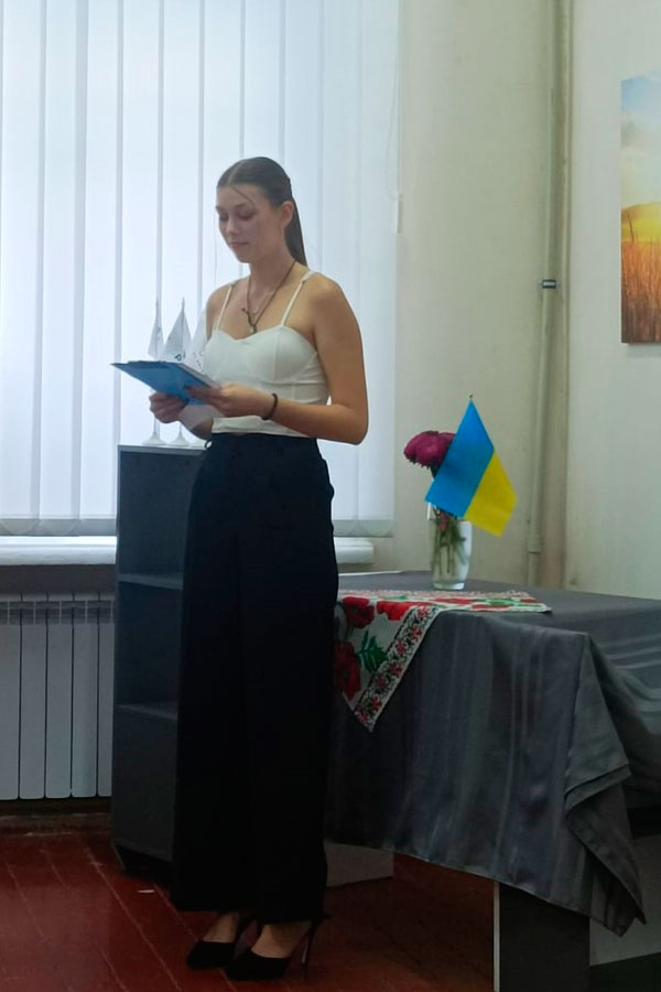 Також, з вітальним словом виступила голова студентського самоуправління, яка звернулася до студентів першого курсу та старших із побажаннями натхнення, активної участі у студентському житті та досягнення успіхів у навчанні.