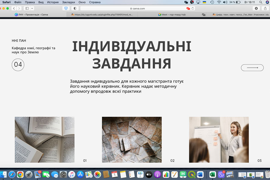 Керівник практики, гарант освітньої програми «Географія», доцент кафедри хімії, географії та наук про Землю, Ірина Мельник, детально ознайомила здобувачів освіти з цілями, завданнями та змістом практики. Кожен магістрант отримав індивідуальне завдання, яке допоможе йому закріпити теоретичні знання на практиці та розвинути науково-дослідницькі та педагогічні навички.