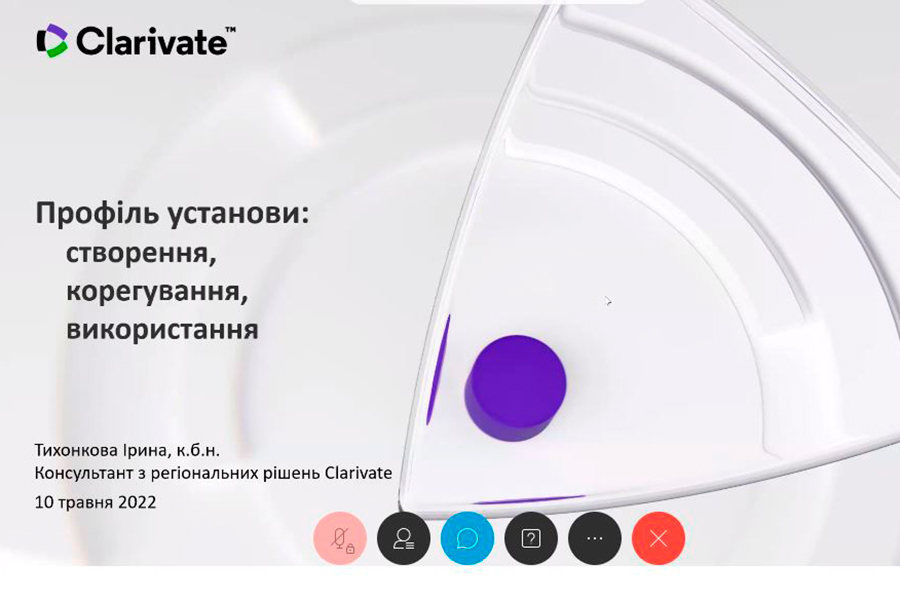 10 травня викладачі кафедри української мови взяли участь у черговому вебінарі компанії Clarivate на тему «Профіль установи: створення, корегування, використання».