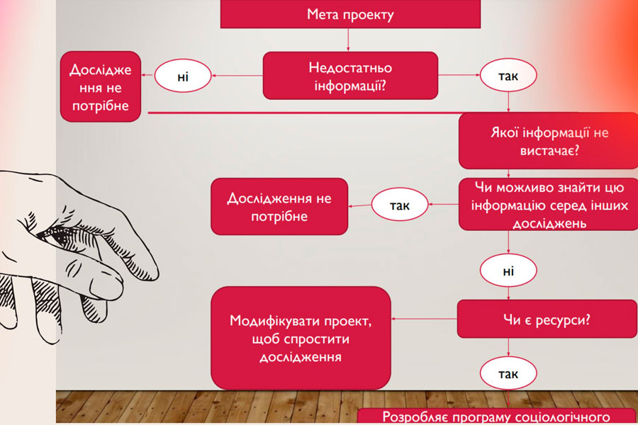 Проєкт - це комплекс дій та / або заходів, які здійснюються для досягнення запланованих результатів впродовж відведеного часу, з допомогою ресурсів (бюджету) визначеним колом людей. Соціологічне дослідження - система логічно послідовних методологічних, методичних та організаційно-технічних процедур, пов'язаних єдиною метою - отриманням достовірних даних про вивчене соціальне явище або процес їх використання у практиці соціального управління – зазначила Катерина Котеленець.