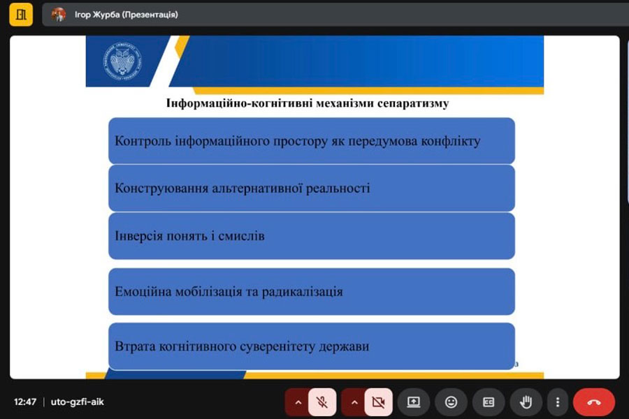 Тематика лекції є надзвичайно актуальною в умовах сучасних міжнародних конфліктів і трансформації глобального безпекового середовища. У ході заняття було розглянуто сепаратизм не лише як політичне явище, а як складний просторово-геополітичний феномен, тісно пов’язаний із процесами глобалізації, регіональної нестабільності та боротьби за контроль над територіями.