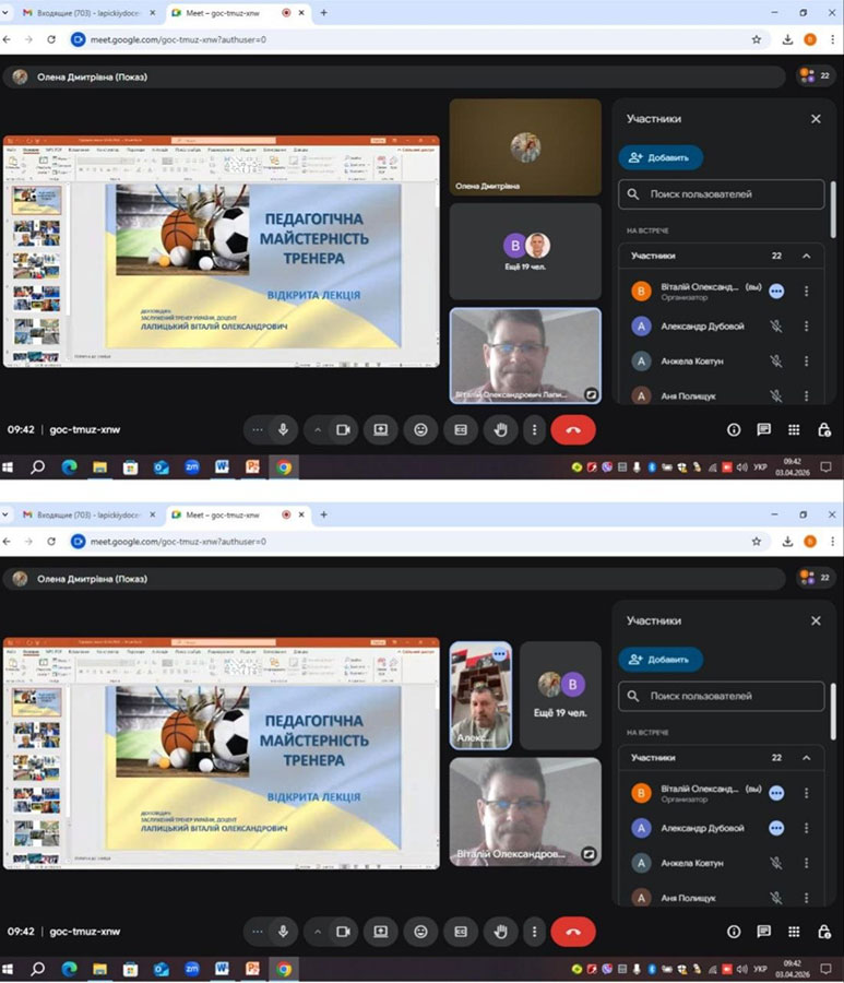 2 квітня 2026 року на кафедрі олімпійського та професійного спорту відбулася знакова науково-методична подія – відкрита лекція на тему «Педагогічна майстерність тренера». Спікером виступив фахівець, Заслужений тренер України, доцент кафедри Лапицький Віталій Олександрович.
