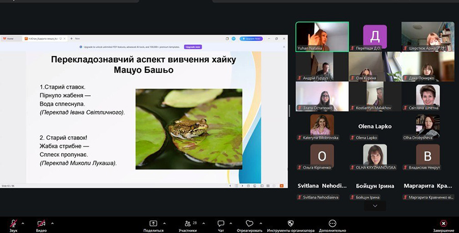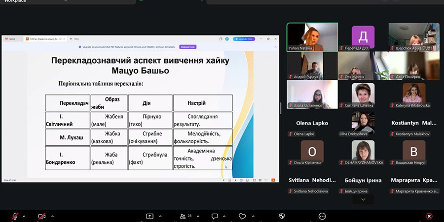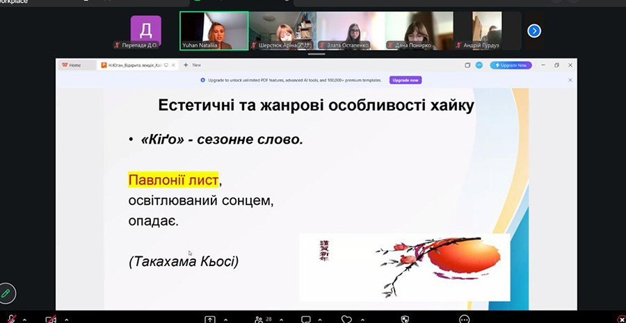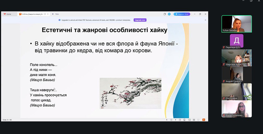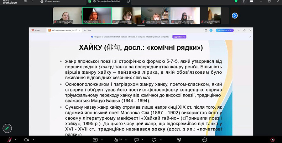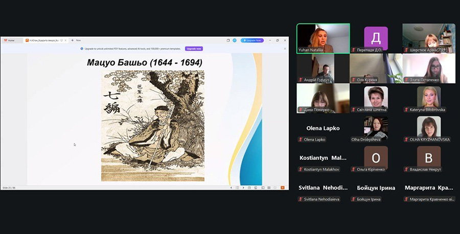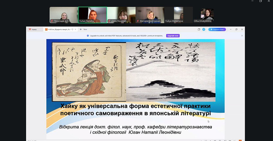 Важливим аспектом лекції стало також висвітлення проблеми рецепції хайку в європейському культурному просторі. Було підкреслено, що у процесі міжкультурної трансляції ця форма часто зазнає трансформацій і спрощень, що актуалізує необхідність глибшого розуміння її естетичних і світоглядних засад.
