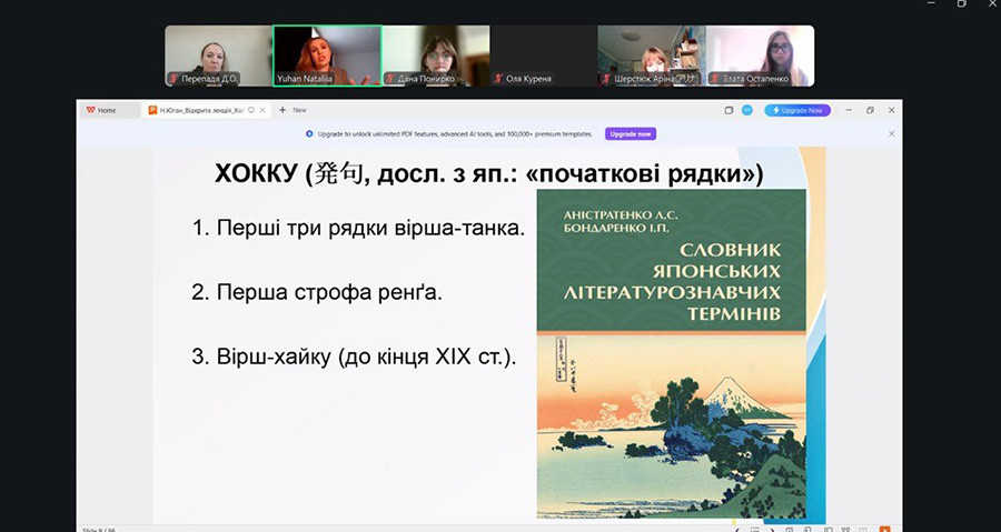 16 квітня 2026 року відбулася відкрита лекція доктора філологічних наук, доцента, професора кафедри літературознавства і східної філології Юган Наталії Леонідівни на тему:«Хайку як універсальна форма естетичної практики поетичного самовираження в японській літературі».