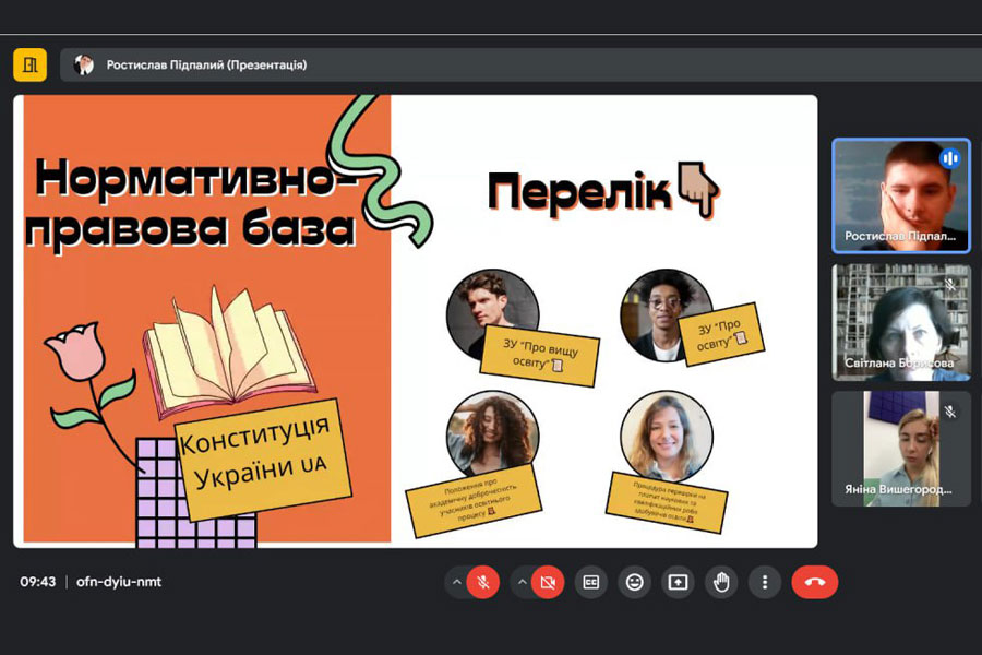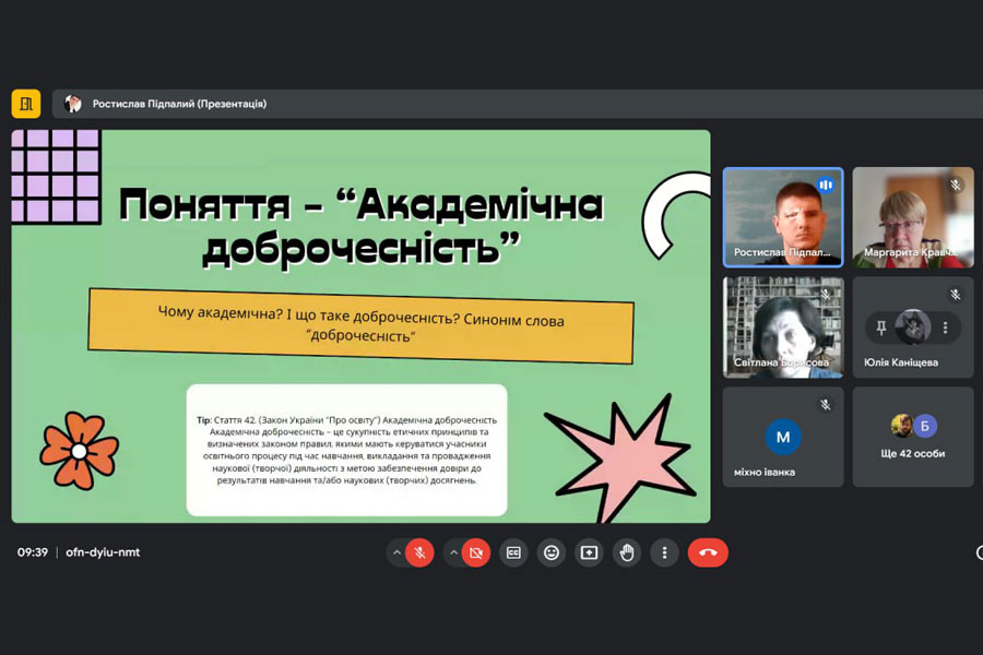 Лектором Максимом САЙБЕКОВИМ були висвітлені питання: актуальної нормативно-правової бази щодо визначення поняття «академічна доброчесність», принципів і цінностей АД, відповідальності за порушення принципів АД, питань перевірки кваліфікаційних робіт здобувачів вищої освіти.