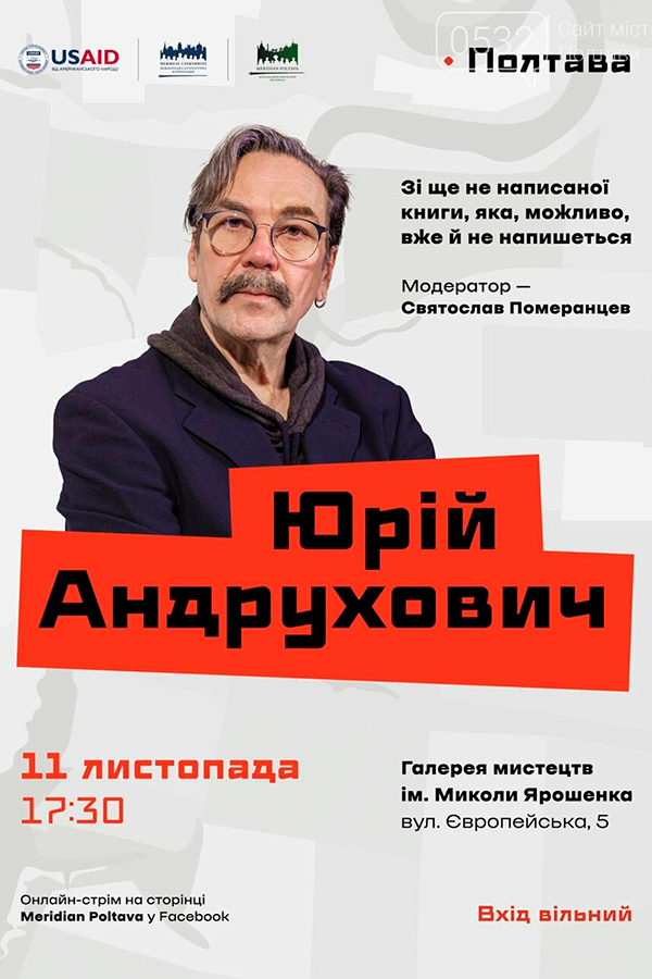В рамках туру українськими городами, 11 листопада у Галереї мистецтв міста Полтава відбулася зустріч з українським поетом, прозаїком, есеїстом, музикантом та перекладачем Юрієм Андруховичем.