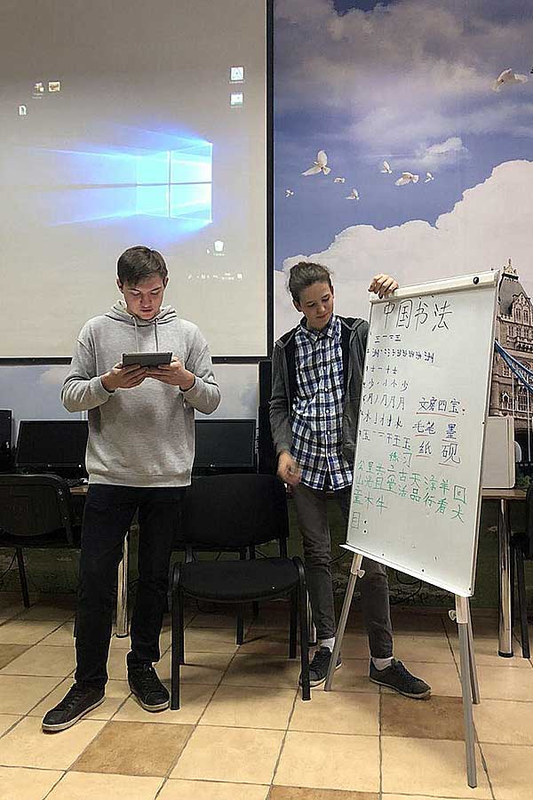 Студенти разом із вчителем китайської мови цього ліцею Корінською О.О., яка за основним місцем роботи працює старшим лаборантом кафедри східних мов та навчається в магістратурі зі спеціальністю ,,Мова та література (китайська)ˮ, провели ряд заходів. Серед них – брейн ринг ,,Китай – країна майбутньогоˮ , майстер-клас з китайської каліграфії, інтелектуальна гра ,,Видатні китайські діячі та їх винаходиˮ. Під час заходів, учні ліцею отримали від Лі Вейхуа справжні китайські імена, які вони використовували під час спілкування.
