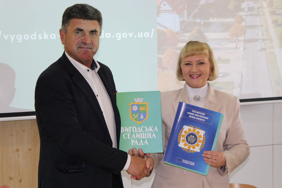 підписання угоди про співпрацю між Державним закладом «Луганський національний університет імені Тараса Шевченка» та Вигодською селищною радою, предметом якої є консолідація ресурсів і потенціалу для отримання ефективних результатів у розвитку освітніх систем Вигодської селищної територіальної громади та Університету в сукупності навчальної, навчально-методичної, науково-дослідної і соціокультурної діяльності та взаємного обміну досвідом з метою підвищення якості освіти, інноваційного розвитку громади та Університету тощо;