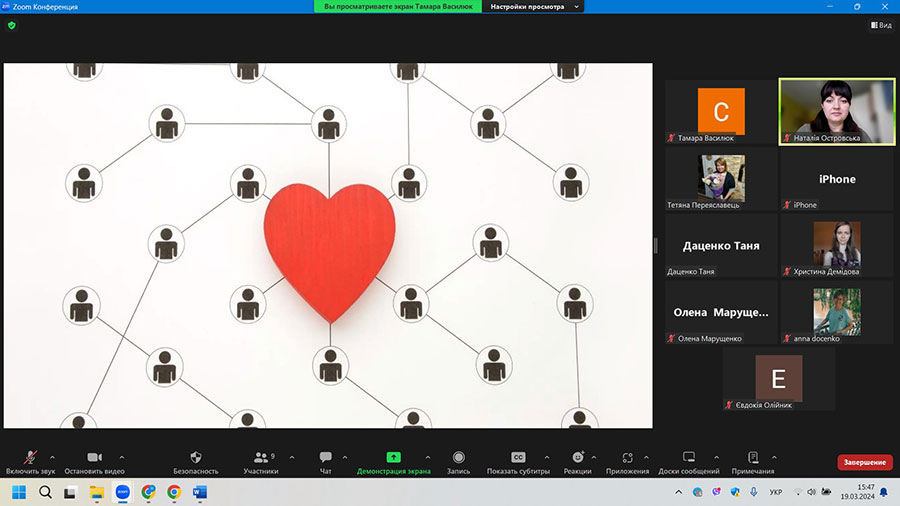 З цієї нагоди 19 березня 2024 року, в межах роботи Всеукраїнського вебінару «Сучасні виклики соціальної роботи», кафедрою соціальної педагогіки ДЗ «Луганський національний університет імені Тараса Шевченка» та кафедрою соціальної педагогіки і соціальної роботи Криворізького державного педагогічного університету було організовано зустріч з Головою правління ХОГО «МИР» в Україні», директоркою Асоціації українців у Португалії «Відкриття моментів» Жанною Харківською-Дзюбою.