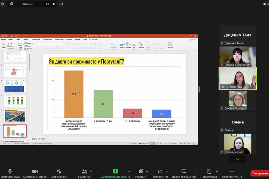 Темою зустрічі стало «Дослідження інтеграційних та адаптаційних процесів українців,особливо тих, що мають статус тимчасового захисту, для зрозуміння їхньої взаємодії з новим соціокультурним середовищем: на прикладі Португалії».