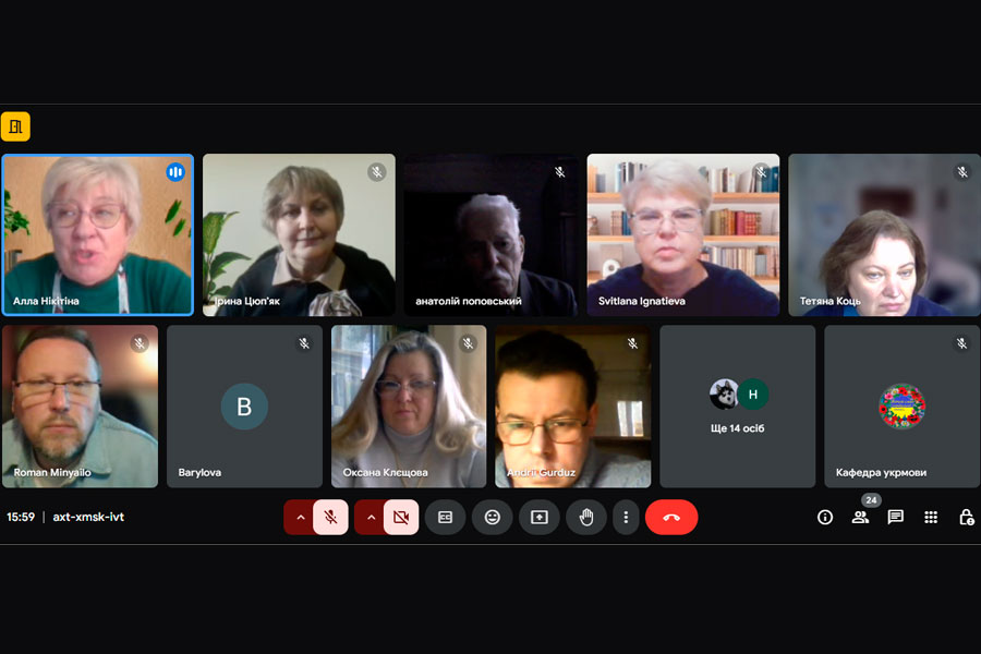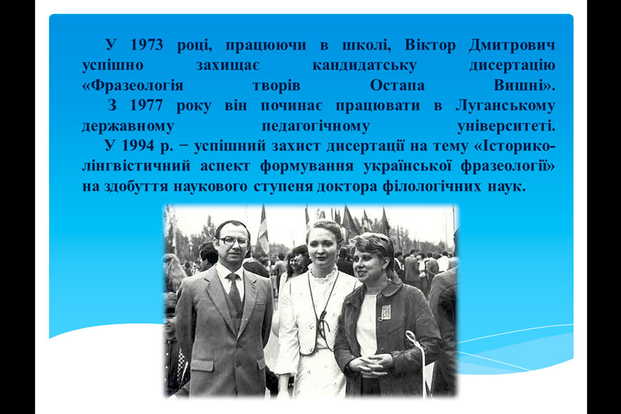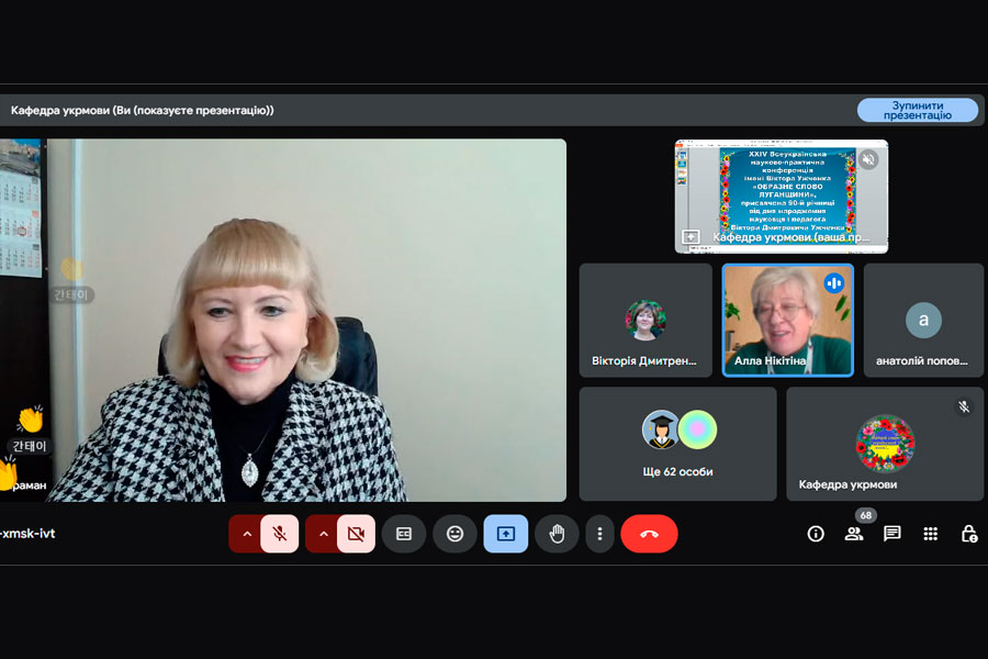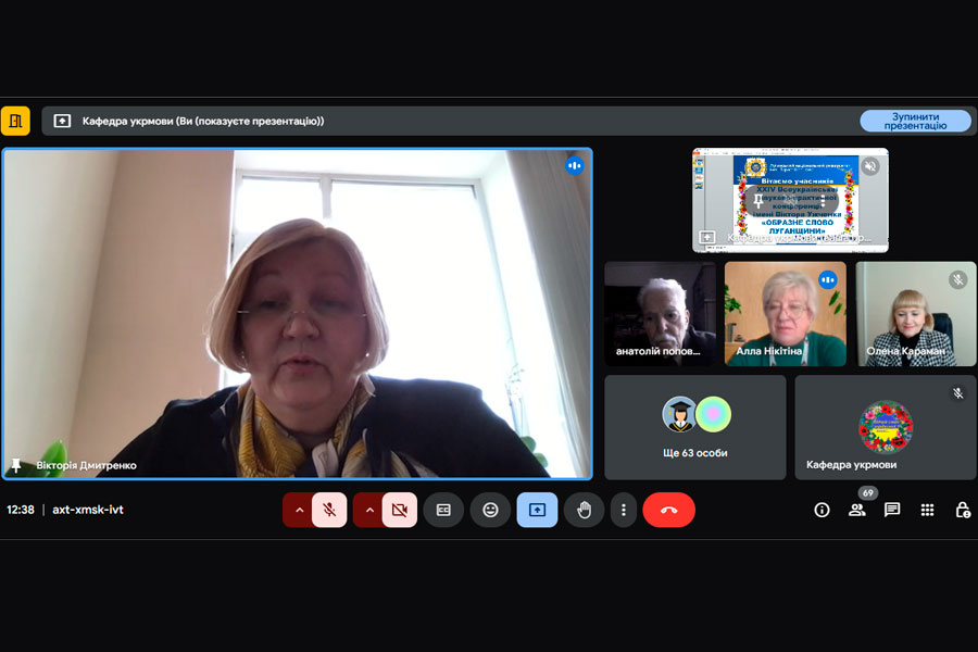Програма пленарного засідання передбачала два блоки, перший з яких був присвячений пам’яті науковця і педагога Віктора Дмитровича Ужченка. Прозвучала присвята доцентки ДЗ «ЛНУ імені Тараса Шевченка» Оксани Клєщової «Служителю фразеологічної музи», презентація-спогад доцентки ДЗ «ЛНУ імені Тараса Шевченка» Галини Барилової «Віктор Дмитрович Ужченко: науковий і педагогічний шлях», доповідь провідної наукової співробітниці відділу стилістики, культури мови та соціолінгвістики Інституту української мови НАН України Світлани Бибик «Доробок В.Д.Ужченка і сучасна українська лінгвостилістика», спогади професора Дніпровського державного університету внутрішніх справ Анатолія Поповського «Залишаються в пам’яті незабутні миттєвості», доповідь доценток ДЗ «ЛНУ імені Тараса Шевченка» Лариси Мельник і Тамари Маркотенко «Фразеологія як справа життя: науковий шлях Віктора Ужченка», випускниці університету, доцентки Ірини Мілєвої «Щоденник вдячної учениці», заступниці директора з навчально-виховної роботи, учительки української мови і літератури Лисичанський ліцей № 17 Сєвєродонецького району Луганської області Поліни Василеги «Подяка вчителеві» та ін.