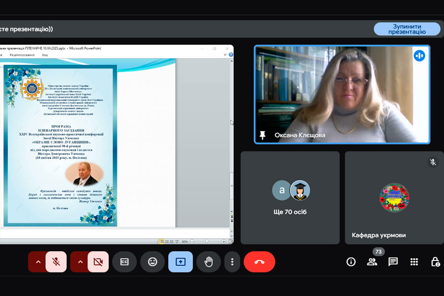 Протягом 10–11 квітня 2025 року в ЛНУ імені Тараса Шевченка тривала робота ХХІV Всеукраїнської науково-практичної конференції імені Віктора Ужченка «Образне слово Луганщини», присвяченої 90-й річниці від дня народження науковця і педагога Віктора Дмитровича Ужченка.