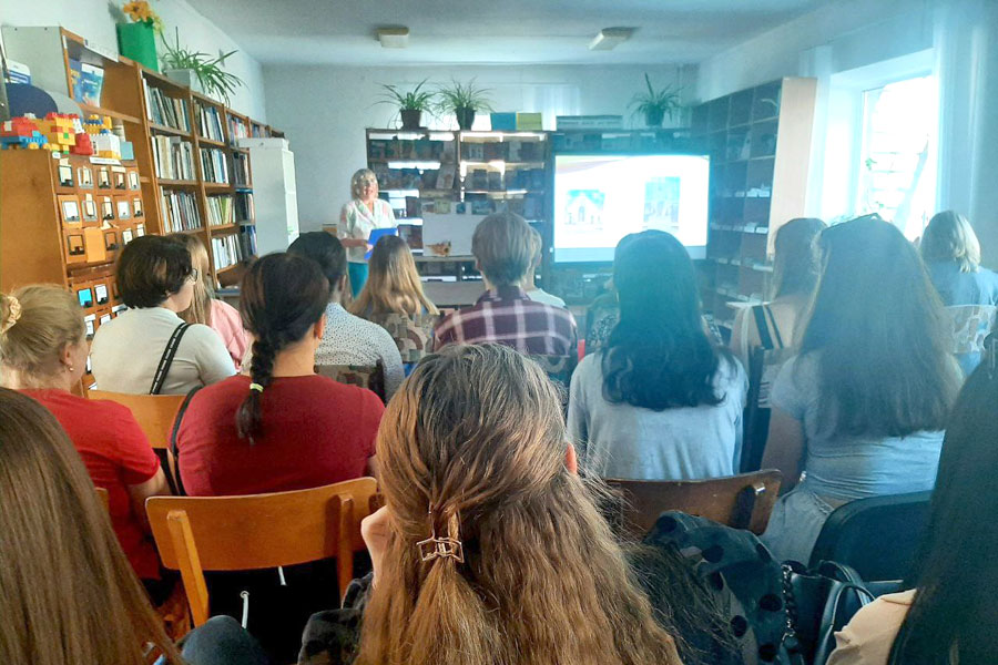 Бібліотекар Людмила Абросемівна детально представила юнацький абонемент, презентувала наявний фонд наукових видань з різних напрямків діяльності. Окрім цього, підготувала для здобувачів цікаву презентацію на тему: "Гоголівськими стежками по місту Миргород"