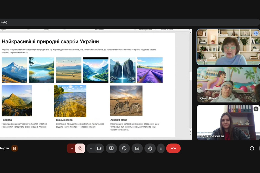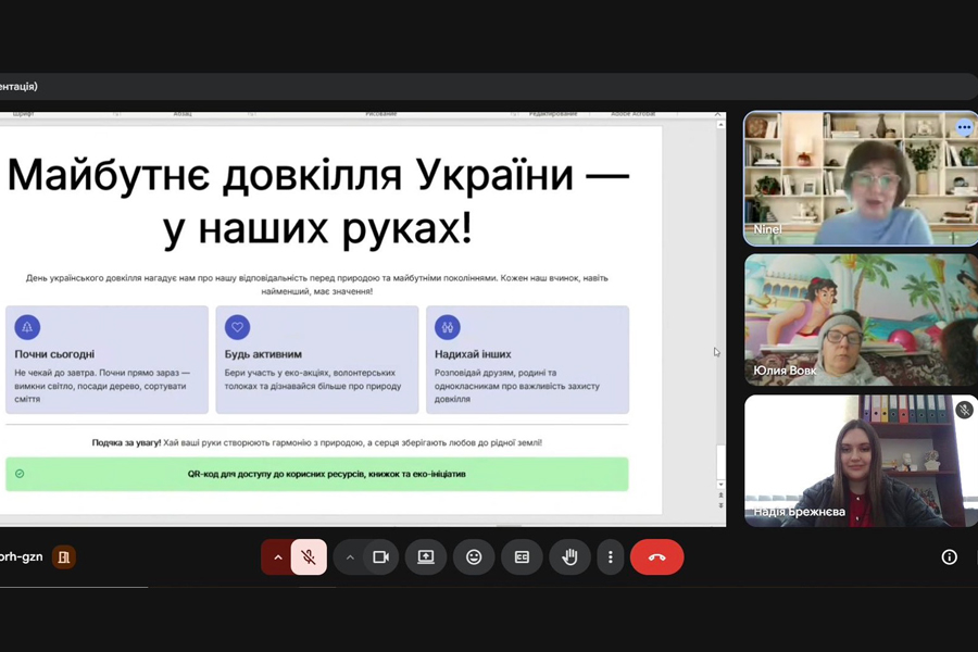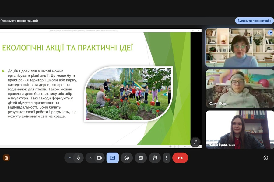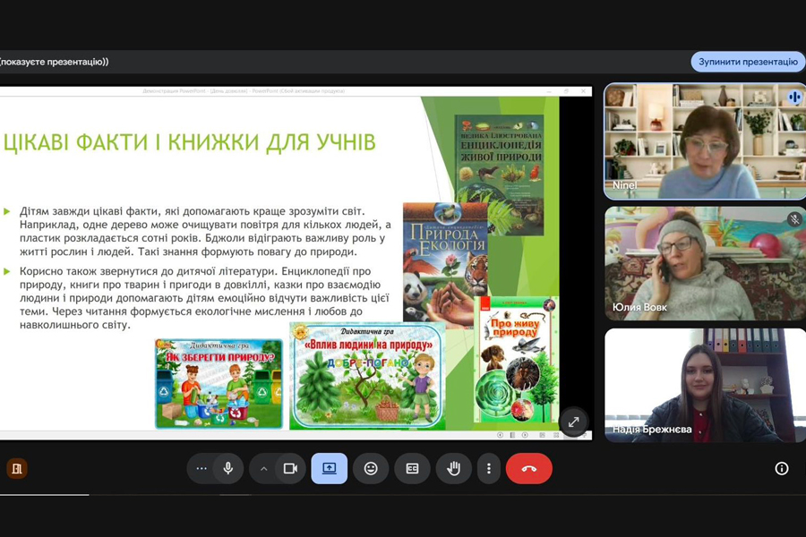 Майбутніми вчителями початкових класів підготовлено презентації, що містять методичні матеріали для проведення інтегрованих екологічних заходів, спрямованих на виховання дбайливого ставлення до природи та формування усвідомлення необхідності зберігати і покращувати довкілля рідної країни. Авторами особлива увага звернена на екологічні проблеми України, зокрема наслідки війни для довкілля.