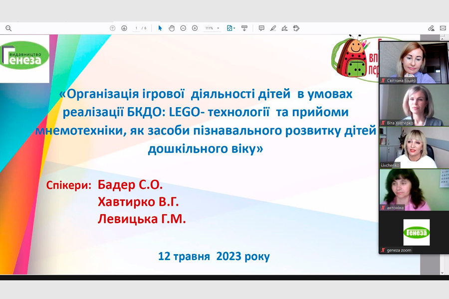 Організатором заходу є видавництво «Генеза», яке щомісяця реалізовує обмін досвідом серед науковців та вихователів-практиків. Цього разу вебінар об’єднав близько п’ятисот однодумців зі всієї країни. Говорили про актуальні проблеми в галузі дошкільної освіти, реалізацію Lego-технології у роботі з дошкільникам, прийоми мнемотехніки та механізми формування ціннісно-смислових орієнтацій у підростаючого покоління.