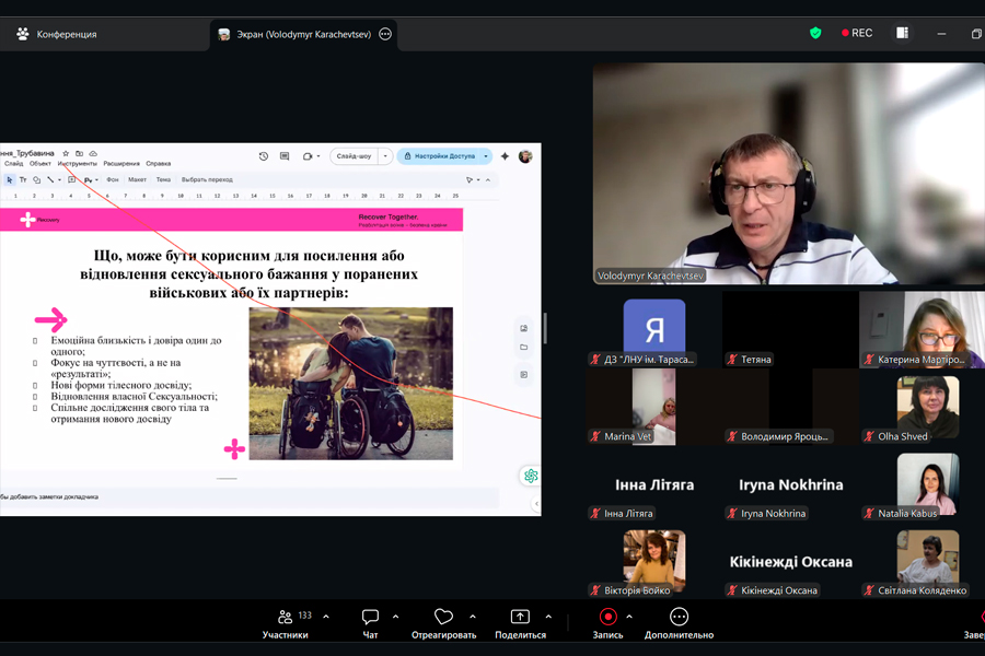 Під час заходу учасники мали можливість ознайомитися з практичними аспектами роботи з темами сексуальності, бажання та збудження в умовах підвищеного стресу, зокрема у контексті військового досвіду. Особливу увагу було приділено питанням психологічної підтримки військовослужбовців та їхніх родин, відновлення емоційного контакту в парі, а також подолання бар’єрів у комунікації на чутливі теми.
