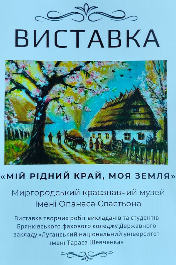 104 річницю від дня утворення Державного закладу «Луганський національний університет імені Тараса Шевченка» та 211 років від дня народження Кобзаря викладачі та студенти Брянківського фахового коледжу відзначили відкриттям виставки творчих робіт у Миргородському краєзнавчому музеї імені Опанаса Сластьона.