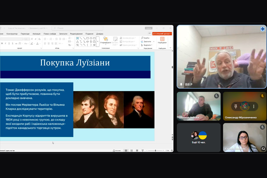 У рамках освітнього компоненту «Історія країн Західної Європи та Америки» на базі Навчально-наукового інституту соціальних і гуманітарних наук Луганського національного університету імені Тараса Шевченка відбулася відкрита лекція американського історика та викладача Білла Парсонса на тему «Westward Expansion. The Growth of the United States in the 19th Century».