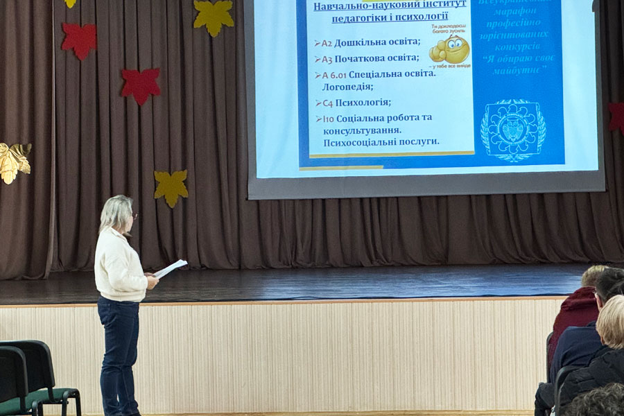 Під час зустрічей співробітники відділу маркетингу та викладачі університету за допомогою презентації ознайомили школярів із умовами участі у Всеукраїнському марафоні «Я обираю своє майбутнє», розповіли про його три напрями — соціогуманітарний, економіко-технологічний та природничий, — і детально пояснили, як саме учні можуть реалізувати себе у кожному з них.