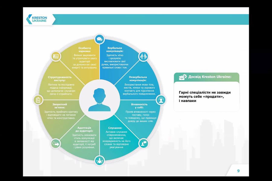 Під час заходу обговорювались основні відмінності жорстких та мʼяких навичок у професіонала в різних галузях знань, ділились досвідом розробки методичних матеріалів щодо формування цих навичок у студентів закладів вищої освіти. Пан Андрій акцентував свою увагу на формуванні у майбутніх професіоналів саме комунікативних навичок, навичок самопрезентаціі, вміння працювати в команді, критично мислити, гнучкість та адаптивність, навички емоційного інтелекту. Поділився своїм досвідом розвитку цих навичок у компанії Kreston Ukraine.