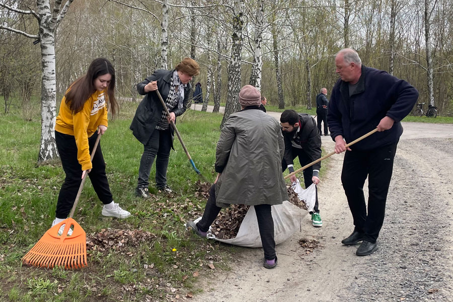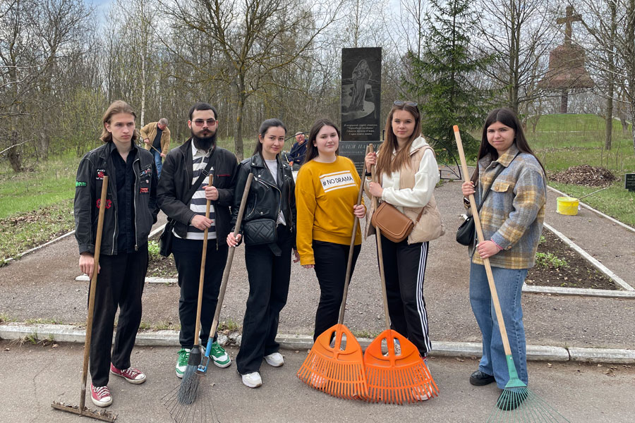 Студенти пліч-о-пліч із чорнобильцями прибирали тогорічне листя, вигрібали сухі гілки, збирали сміття — приводили до ладу місце, яке є символом глибокої шани і пам’яті про героїв, що віддали здоров’я, а часто й життя, рятуючи світ від ядерної біди.