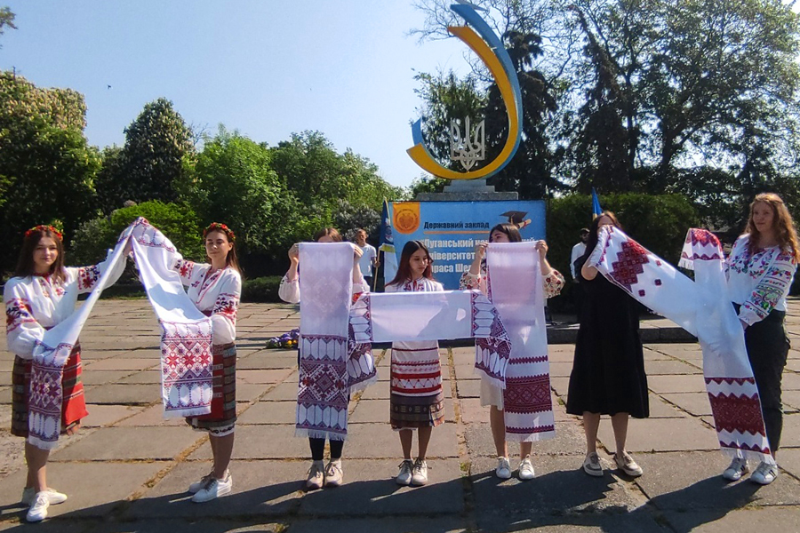 Для виявлення гордості за свою національну культуру представники та студенство Луганського національного університету імені Тараса Шевченка одягли сьогодні традиційні вишиванки та приєдналися до міських святкових заходів, приуроченому цьому дню, який спонукає до єдності і культурного відродження українського народу.