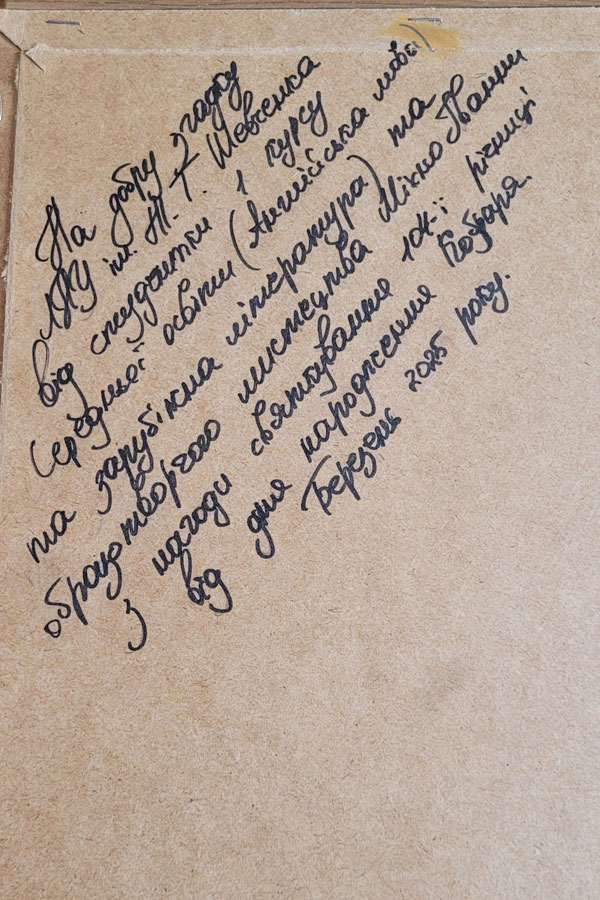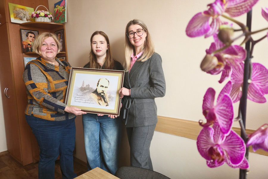 Ми вдячні Іванні за її увагу й шанобливе ставлення до шевченківських традицій, любов до творчості й щедрість. Картина посяде чільне місце й стане окрасою шевченківського куточку.