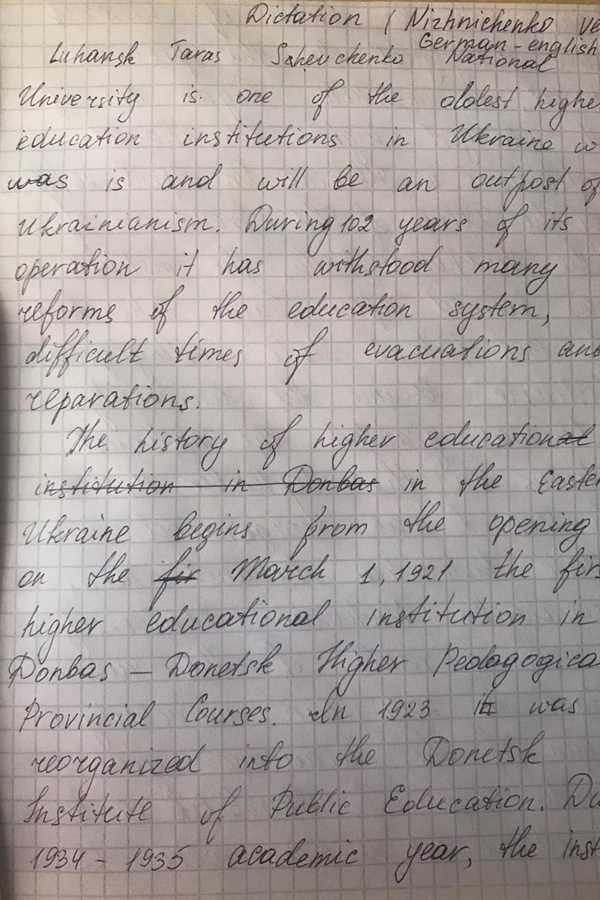 Кафедрою романо-германської філології було проведено онлайн - написання диктанту про історію ДЗ «Луганський національний університет імені Тараса Шевченка» та факультету іноземних мов, під час якого усі охочі могли продемонстрували свою письмову компетенцію.