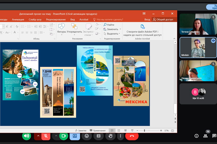 Здобувачі освіти на розгляд комісії представили проєкти різноманітної тематики: проєктування дизайну обкладинки і розворотів книги, серії плакатів, логотипу та елементів фірмового стилю, створення анімаційного фільму. Екзаменаційна комісія відзначила високий рівень дипломних проєктів Киричок Ксенії, Гладюка Ярослава, Бондаренко Єлизавети.