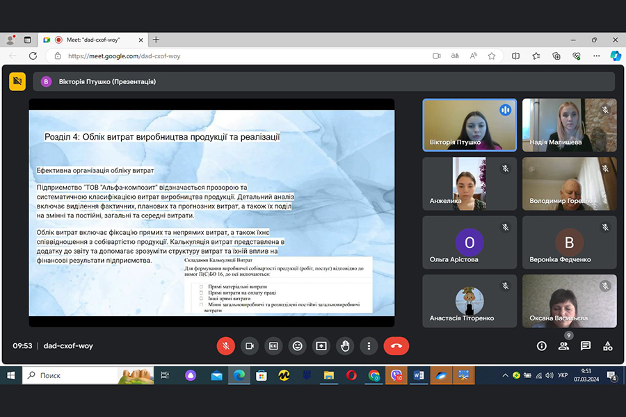 Підсумковим етапом проходження виробничої практики є захист звіту з практики. Не дивлячись на складність організації практичної підготовки в умовах воєнного стану, студенти 3 курсу випускових груп ЕПД21, БД21, ТД21\22П під керівництвом провідних викладачів Арістової О.М. (група ЕПД21), Васильєвої О.М. (група БД21), Святошенко О.О. (група ТД21\22П) успішно завершили проходження технологічної практики і 7 березня 2024 року захистили свої звіти.