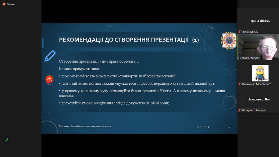 16 грудня, в межах співпраці з Полтавською обласною Малою академією наук учнівської молоді, в.о директора НН ІМІТ Геннадій Могильний, провів заняття на тему «Графічне оформлення наукової доповіді. Загальні підходи та принципи застосування сучасних технологій».