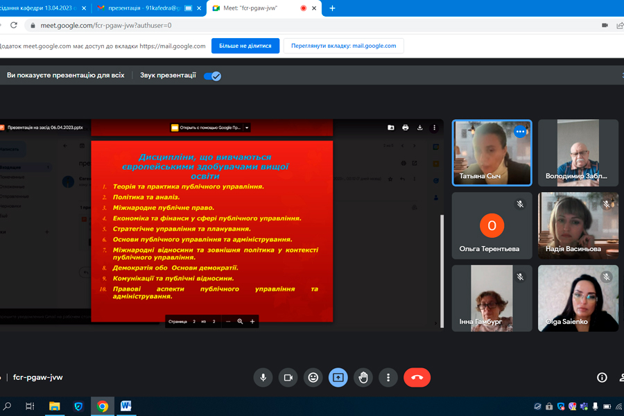 Відбулося засідання кафедри публічної служби та управління навчальними й соціальними закладами Навчально-наукового інституту публічного управління, адміністрування та післядипломної освіти, приурочене до Днів науки.