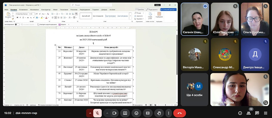 30 вересня 2025 року відбулося перше засідання дискусійного клубу «СКІФ», тема якого «Наукова діяльність здобувачів як складова академічного середовища» стала стартом нового наукового сезону в університеті.